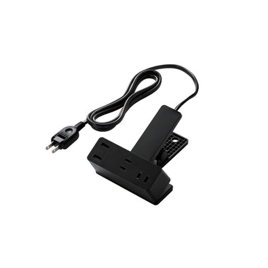 机などに挟んで使えるクリップ機構を搭載した、USB-Aポート付きの電源タップです。