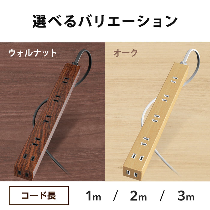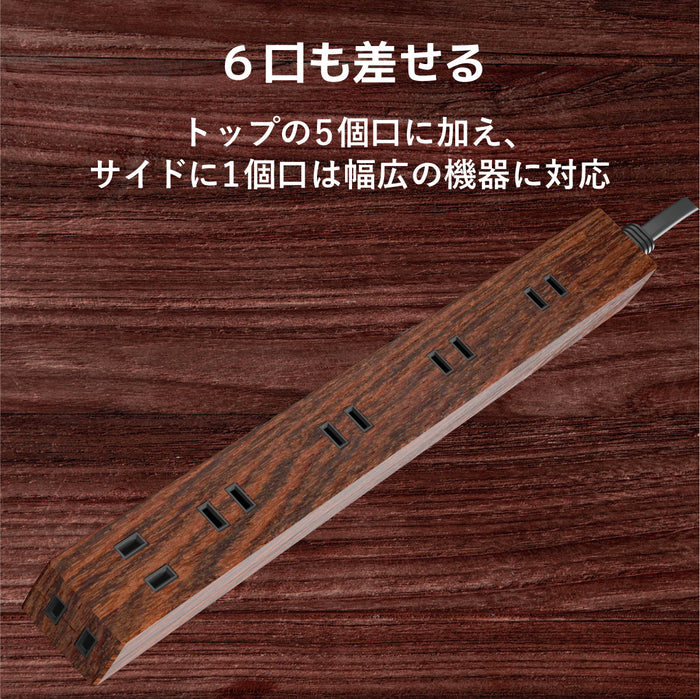 インテリアに馴染む木目調デザイン!差込口の間隔が広くACアダプタもすっきり接続できるスリムタップ。