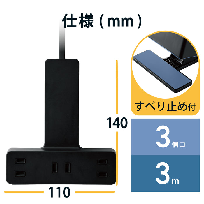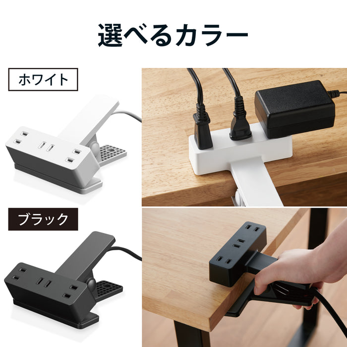 ■クリップ機構を搭載し、机などに挟んで利用することができる2ピン式の3個口タップです。