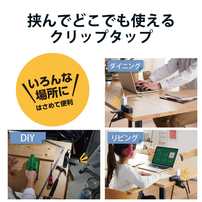タップを常設できないダイニングテーブルなどでテレワークや宿題をする際に、一時的に設置して利用するのに便利です。