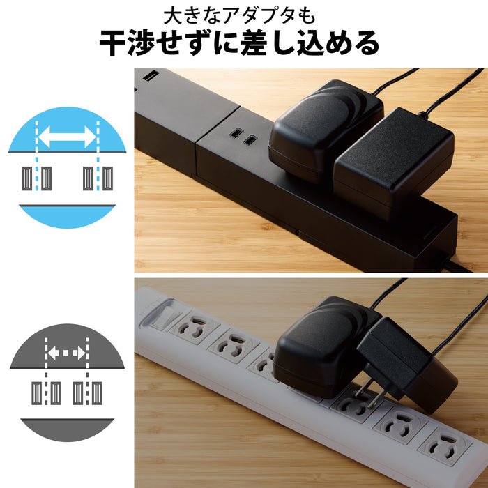 ■AC差込口の間隔距離を57mmとすることで、大きなACアダプターなどを利用する際も隣のAC差込口に干渉しにくい設計となっています。