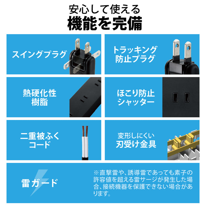 ■プラグには栓刃間に火災の原因となるトラッキング現象防止に有効な熱硬化性樹脂を配し、感電の危険を抑制する絶縁スリーブを装備しています。