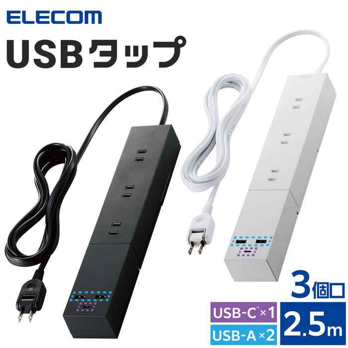 3つの差込口と1つのUSB Type-C(TM)(USB-C(TM))ポート、2つのUSB-Aポートを備えたUSBタップです。