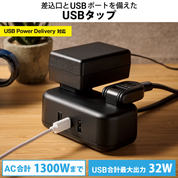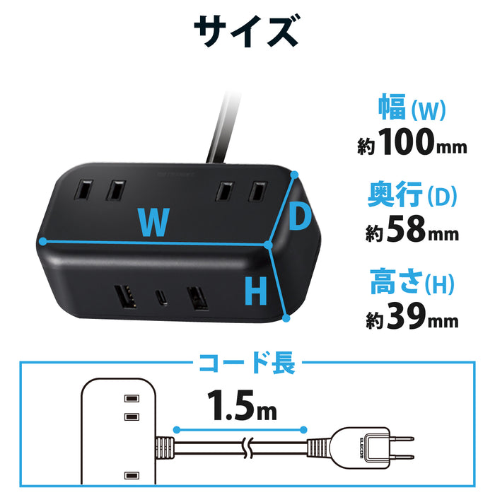 ■2つの差込口と1つのUSB Type-C(TM)(USB-C(TM))ポート、2つのUSB-Aポートを備えたUSBタップです。