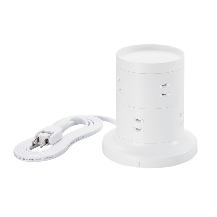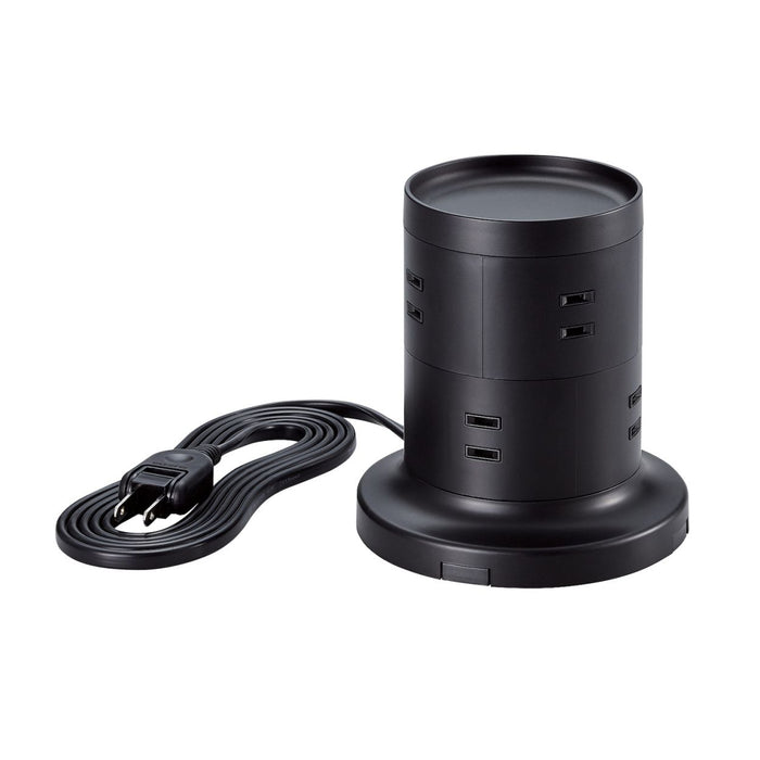 比較的小さな面積で設置ができ、360度あらゆる方向から接続できる8個の差込口を備えたタワー型の電源タップです。