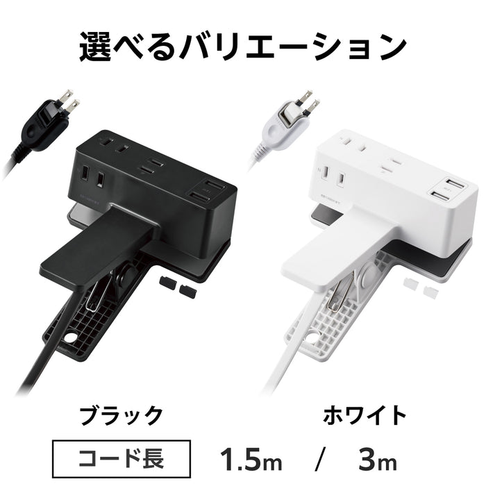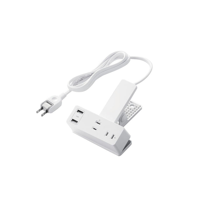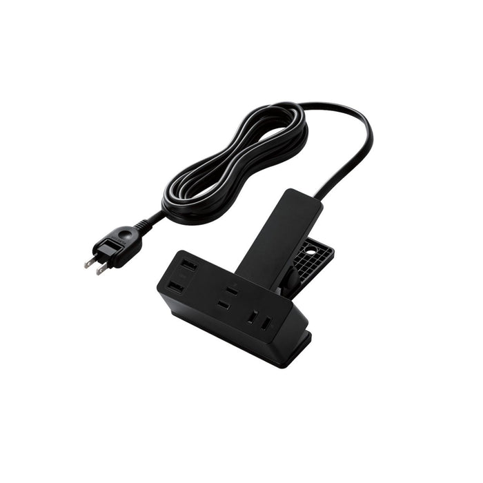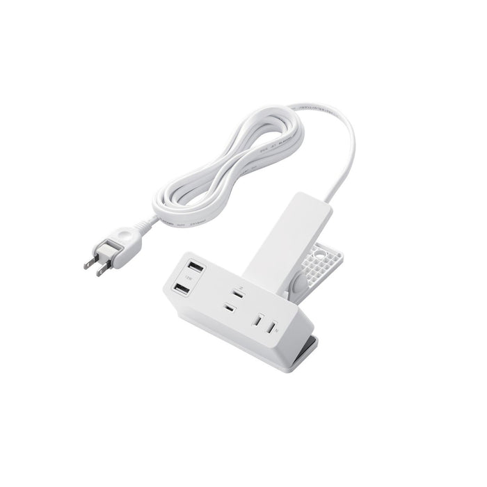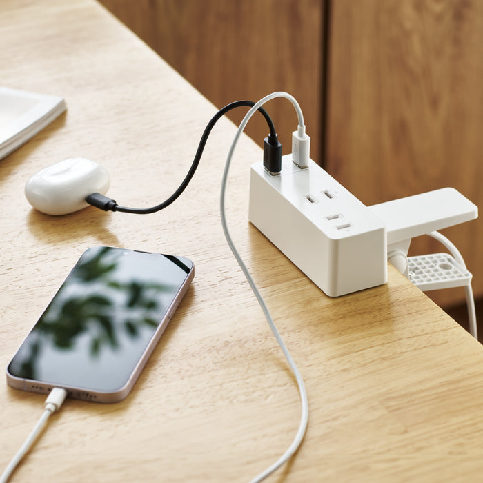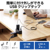 机などに挟んで使えるクリップ機構を搭載した、USB-Aポート付きの電源タップです。