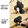 ■ACアダプターなどの大きなプラグを接続しても隣の差込口に干渉しにくいよう、それぞれの差込口で向きを変えて配置しています。