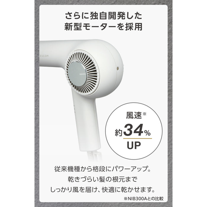 当社従来機種より約22%※2の小型化と約19%※2の軽量化を実現。 大幅に軽量・小型化しながらも風速は34%※2アップ。 持ちやすく乾かしやすい、軽量ドライヤーです。 ※2 NIB300Aとの比較 -
