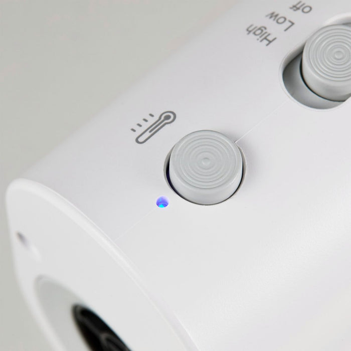 スライドスイッチで電源を入れ、2段階で風量調節が可能。ブラシレスモーターを搭載し、小さくてもパワフルな風で全身を乾かせます。 -