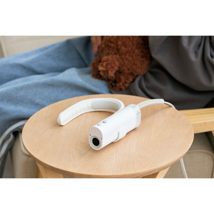 シャンプー後のドライをストレスフリーに!首や肩にかけられるフレキシブルホルダーで両手が自由に使え、ドライ時間がぐっと快適になるペット用ドライヤー「HUG AIR(ハグエアー)」です。愛犬・愛猫を抱きながら乾かせるハンズフリー、お腹周りを下から乾かせるスタンド、細かい部分に使えるハンディーと、シーンに合わせて選べる3WAYスタイル。安心感を与えつつ、効率的に乾かせます。