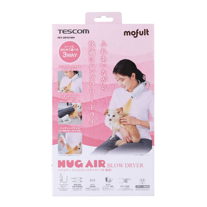 首や肩にかけられるフレキシブルホルダーで両手が自由に使え、ドライ時間がぐっと快適になるペット用ドライヤー「HUG AIR(ハグエアー)」です。シーンに合わせて選べる3WAYスタイルで、シャンプー後のドライをスムーズに仕上げられます。 -