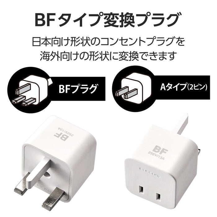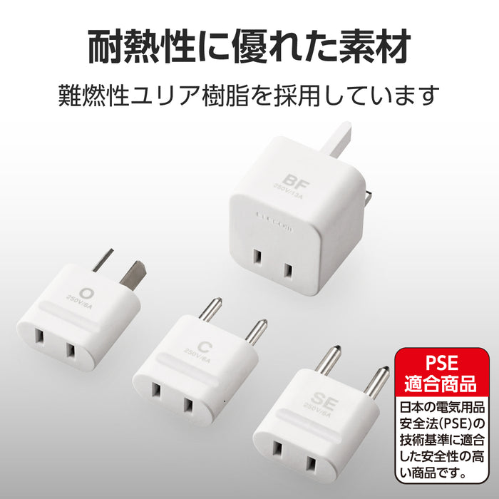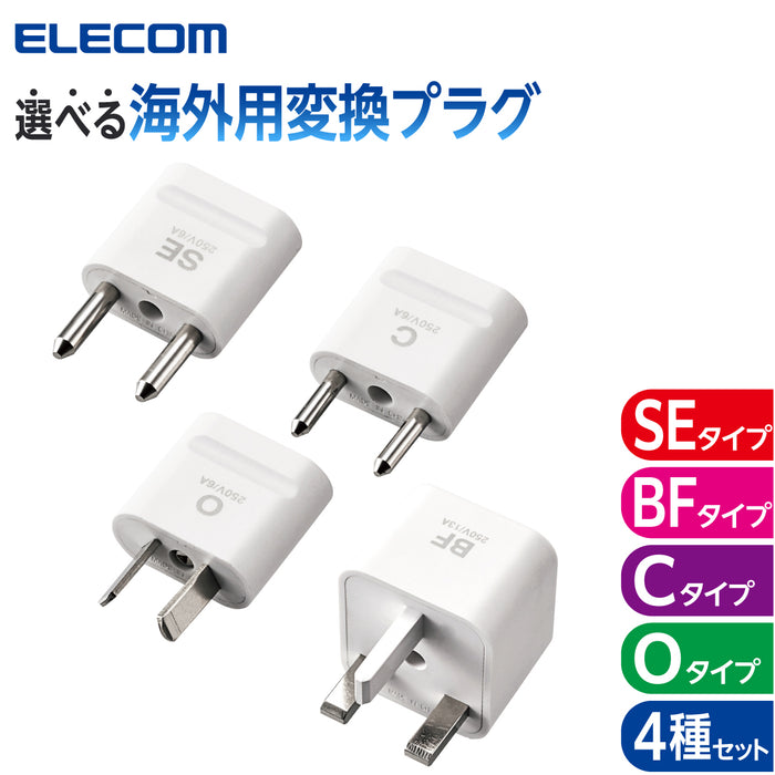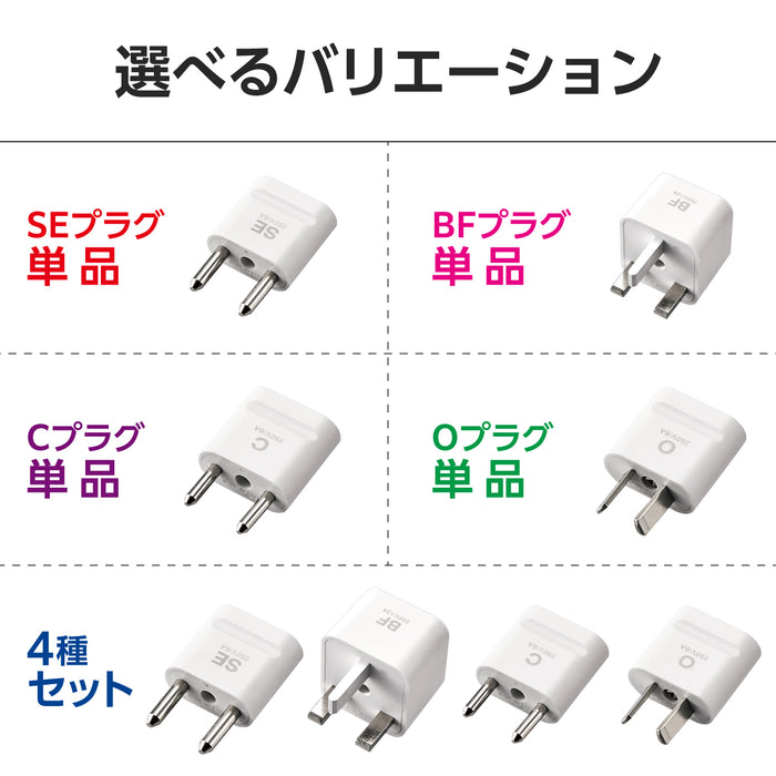 海外のBFタイプ Cタイプ Oタイプ SEタイプのコンセントを日本の形状に変換できる、二重の安全設計を採用した変換プラグ。