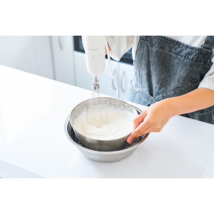 ブレンダーとビーターによる、つぶす・まぜる・泡立てる「1台3役」で調理の下ごしらえがラクラクな、お手軽ハンドブレンダーです。 -