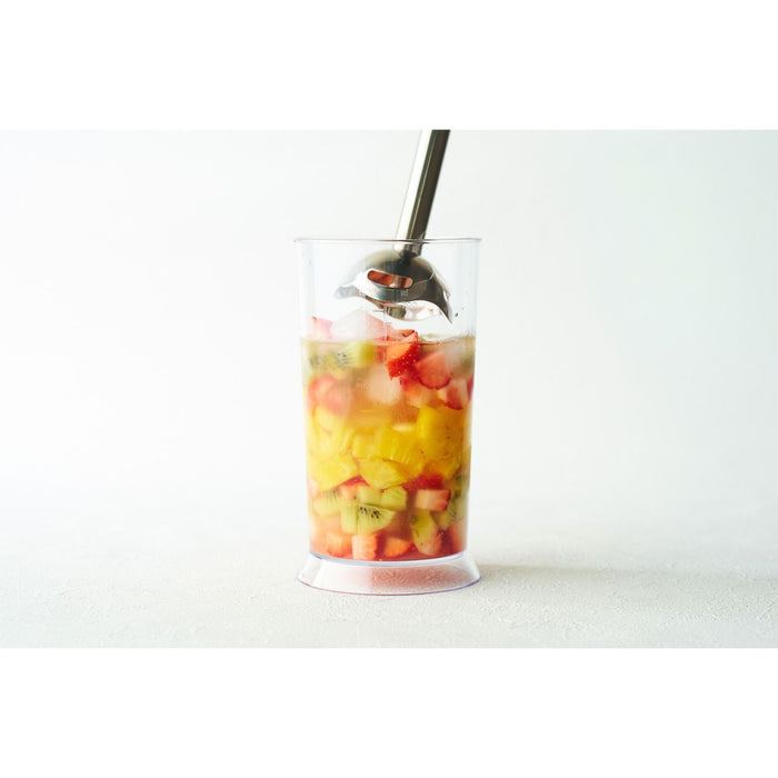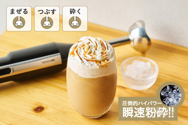ブレンダーの「つぶす・まぜる・砕く」調理でスムージーやポタージュ、スープづくりがより簡単に。400Wのハイパワーモーターと、縦刃で大きな食材を砕き横刃でなめらかに整える4枚刃を採用。硬い氷や冷凍果実にも対応し、フローズンスムージーやシェイク、スムージーボウルなどの冷たいメニューまで本格的に楽しめます。さらにトマトソースやドレッシングもムラなく攪拌でき、仕上がりの質が上がります。 -