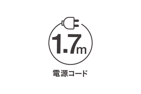 1.7mの電源コードで、コンセントの位置を気にせず、キッチンの好きな場所で使えます。コードが長めだから、無理に引っ張ったり絡まったりする心配も少なく、調理スペースを選びません。 -