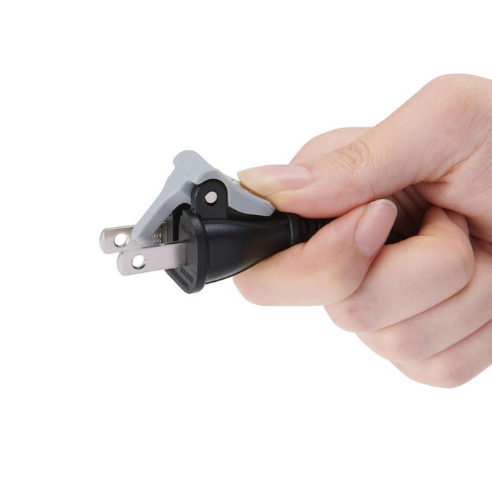 ラク抜きプラグで取り外し簡単。レバーを押すだけでコンセントから簡単に抜くことができます。 -