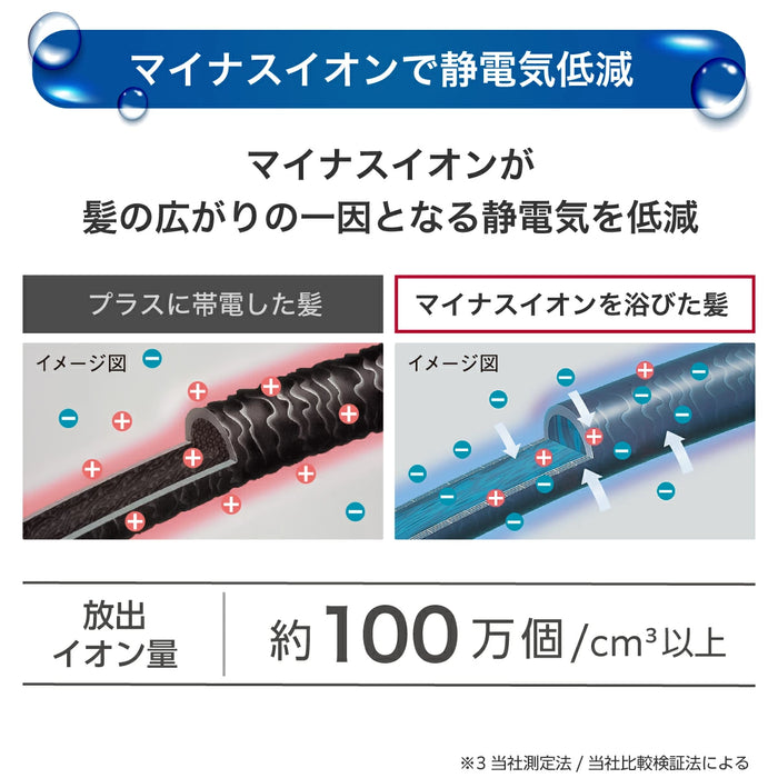 吹出口の2ヶ所からマイナスイオンを発生させ、風に乗せて放出することで、マイナスイオンを髪の根元までしっかり行き渡らせます。