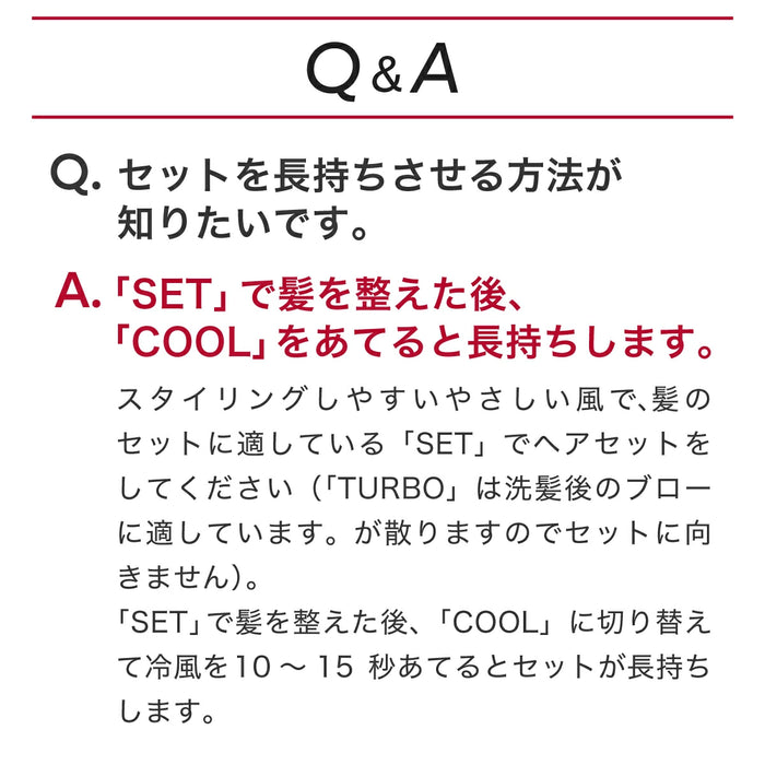髪をセットした後に冷風を当てるとセットが長持ちします。