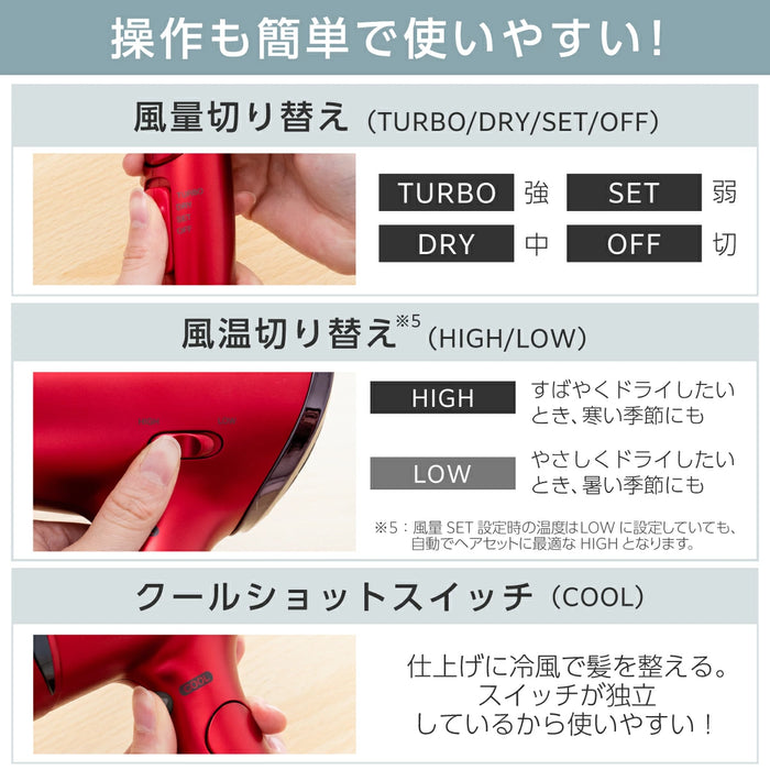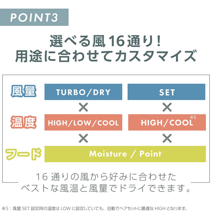 TURBO‐DRY‐SET 速乾からセットまで簡単に切替えできる、選べる3段階風量。 -