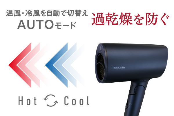 温風と冷風が交互に自動で切り替わります。しっかり乾かしながらも過乾燥を防ぎ、髪の熱ダメージを抑制します。 -