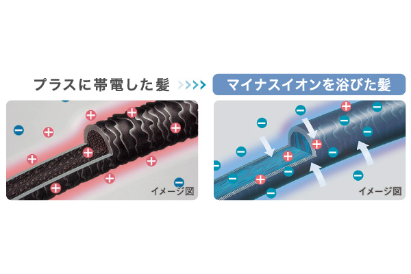 マイナスイオンが髪の広がりの一因となる静電気を低減。髪のツヤもアップします。 -