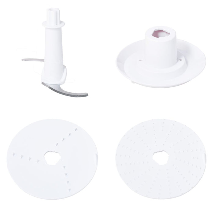 本体寸法 幅約184mm×奥行約159mm×高さ約216mm 本体質量 約1.7kg(収納時) 消費電力 320W 付属品 みじん切りカッター(カッター保護カバー付き)、両面おろし刃、バター&ホイップ、円板軸 定格時間