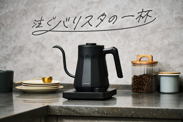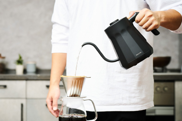 自宅でバリスタ気分を味わいながら、こだわりの一杯を淹れられるドリップケトル。独自のノズル形状により、お湯の流れと注ぐ量を狙いどおりにコントロールできます。2人分にちょうどよい0.6Lで、休日のコーヒータイムやティータイムをゆったり楽しめます。