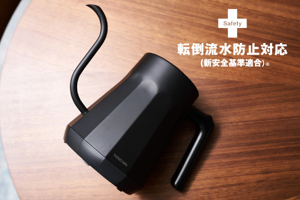 転倒流水防止機能を備えています。万が一、沸騰直後に転倒してもお湯がこぼれにくく、やけどのリスクを低減します。