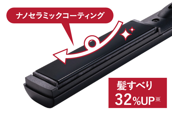 すべりやすさ32%UP!粒子が細かい「ナノセラミック」を配合したコーティングで、摩擦ダメージに配慮した、ひっかかりのないスムーズな髪すべりを実現します。