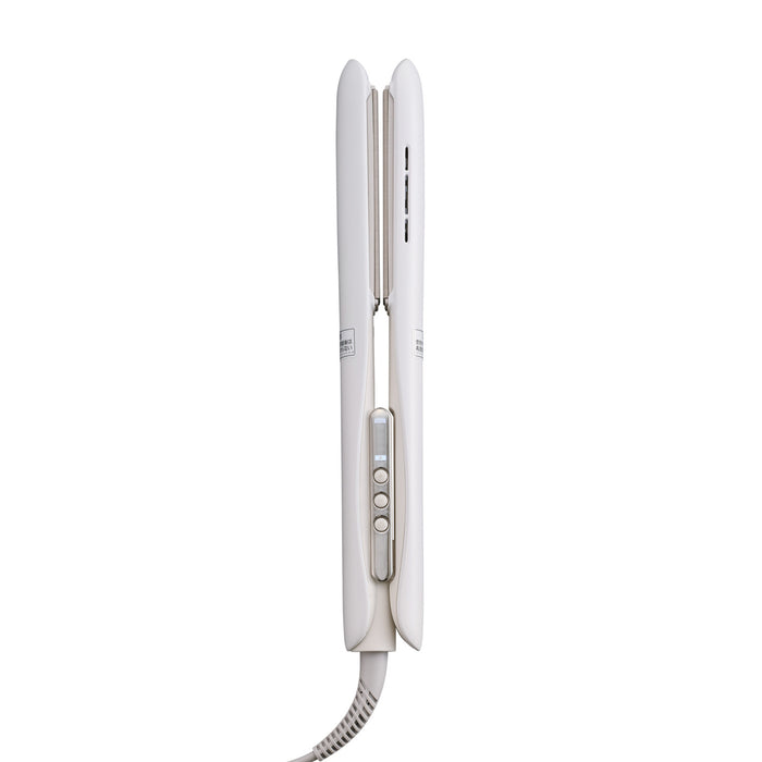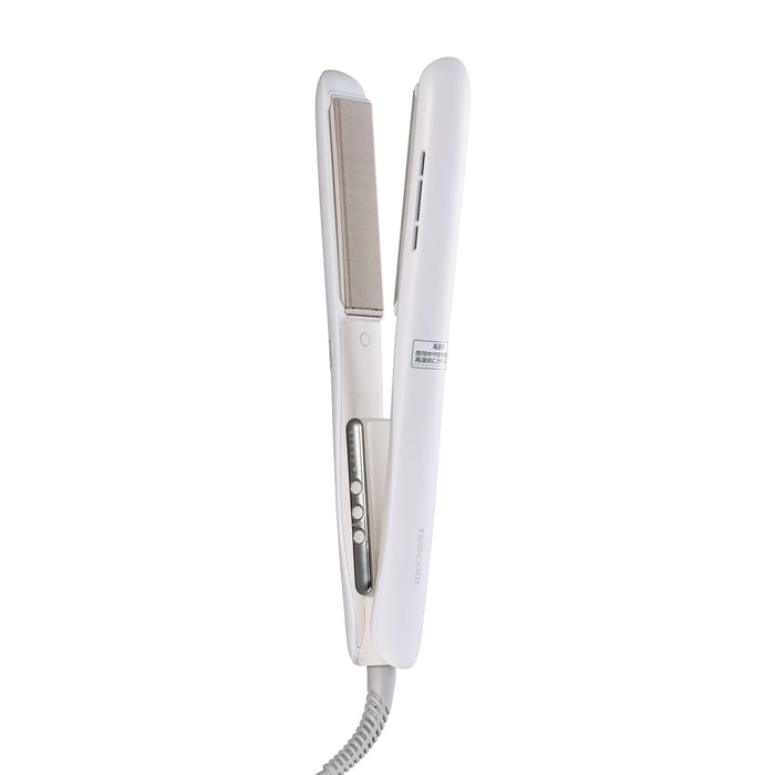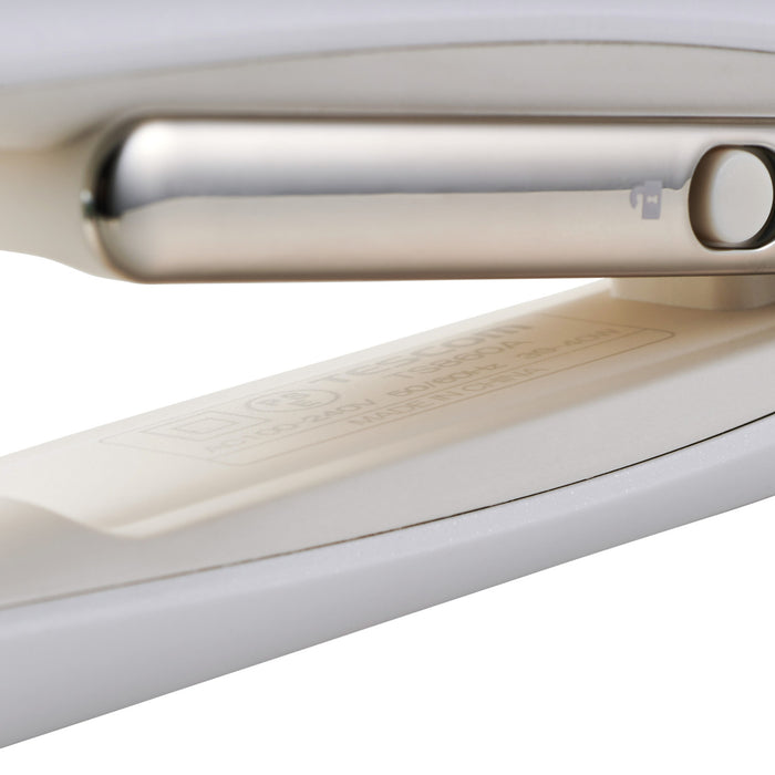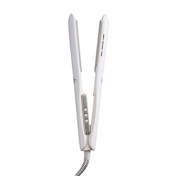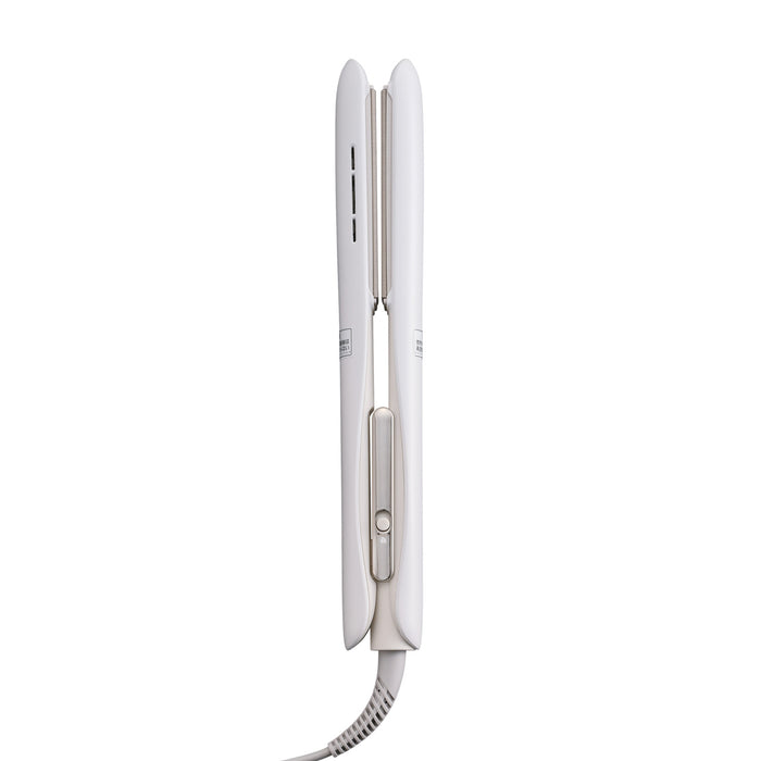 本体寸法 幅約272mm×奥行約32mm×高さ約41mm(収納時)、幅約272mm ×奥行約32mm×高さ約80mm(使用時) 本体質量 約365g(電源コード含む) 消費電力 39-40W 電源 AC100-240V 50/60Hz スイッチ 電源スイッチ「ON / OFF」、温度切替スイッチ「+ / -」 マイナスイオン マイナスイオン アイロンプレートサイズ 25mm×95mm 温度調節幅 120-200℃(5段階 20℃刻み) ラク抜きプラグ 〇 海外使用 〇 温度ロック機能 〇 温度メモリー機能 〇 自動電源OFF機能 〇(約30分後) 開閉ロック機能 〇 付属品 クイックコードバンド コード長 1.7m 主材料 PET、アルミニウム 保証期間 1年間 電源方式 AC式 立ち上がり時間 約25秒(最高温度設定時100℃到達時間) コーティング シルクコーティング™ 型番/JANコード ホワイト:4975302486011