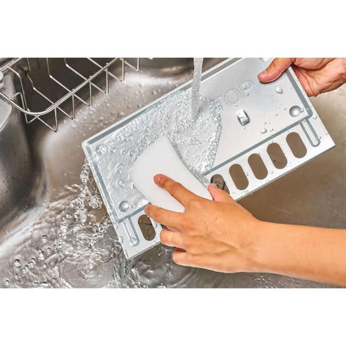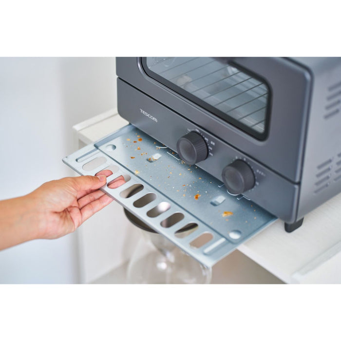 パンくずトレイはスライド式で取り外しやすく、丸洗いOK。お手入れも簡単です。 -