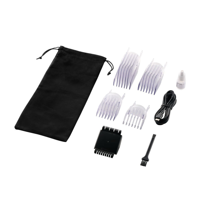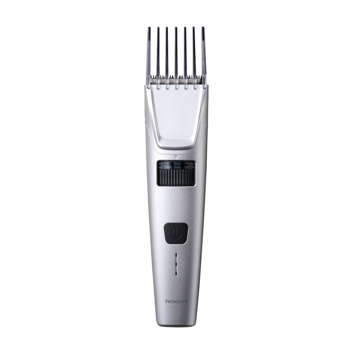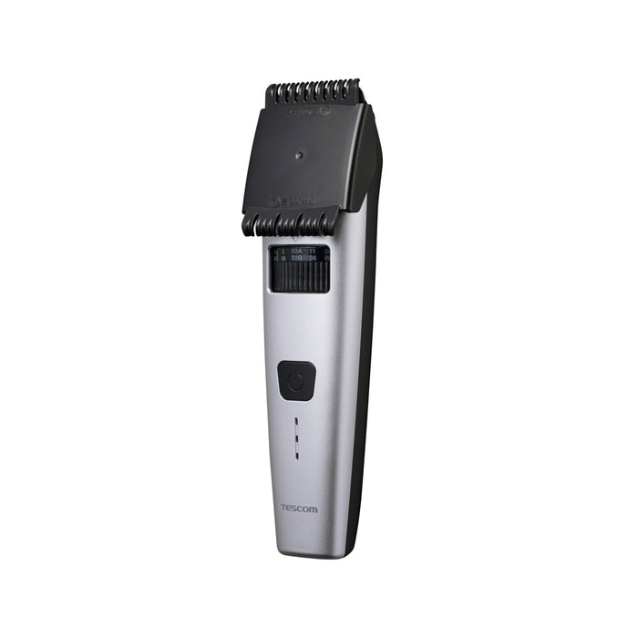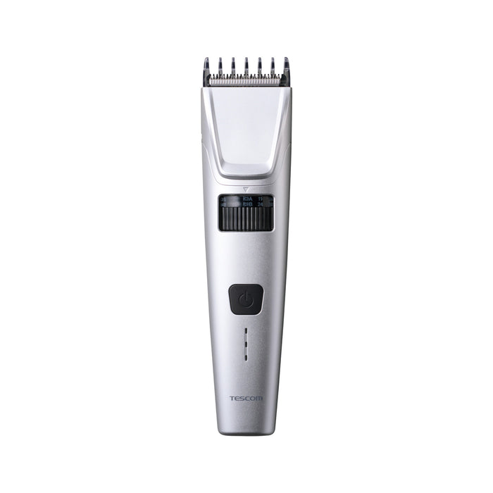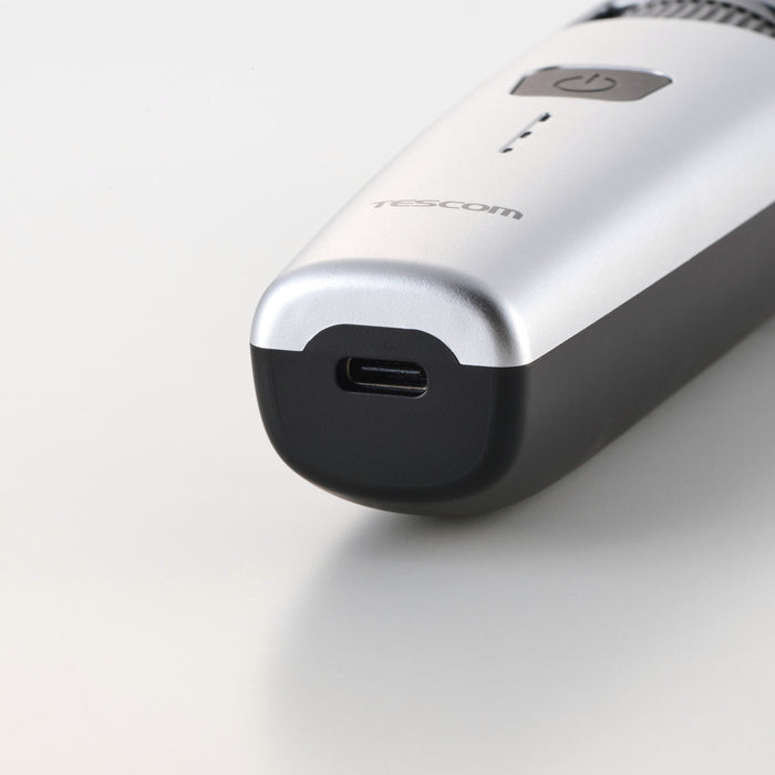本体寸法 幅約45mm×奥行約39mm×高さ約184mm 本体質量 175g 消費電力 5W以下 付属品 コーム4種(刈り高さ3mm-11mm/17mm-25mm/31mm-39mm/45mm-53mm)、電源ケーブル(USB Type-C(TM) - USB Type-C)、掃除用ブラシ、TESCOMオイル、収納ポーチ 電源 入力:AC100-240V 50/60Hz、出力:DC5.0V 1.0A 充電時間 2時間 水洗い ◯ 海外使用 ◯ コード長 1.8m 型番/JANコード -S(シルバー):4975302559029 電源方式 充電・交流式 使用時間 60分 使用電池 リチウムイオン電池 刃幅 40mm 刈り高さ 0.8mm スイッチ ボタン式 充電残量表示 LEDランプ3段階 主材料 ABS 防水性能 IPX7(本体) パーツ コームA(TA034328)、コームB(TA034335)、コームC(TA034342)、コームD(TA034359)、スキ刈りコーム(TA034366)、電源ケーブル(TA034397)、替え刃(TA034380)、オイル(500150)、掃除ブラシ(501455) 保証期間 1年間
